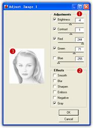 aktuellen Bild hinzuzufügen: Glätten, Verwischen, Schärfen, Prägen, Farben